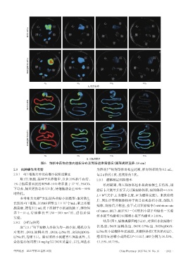 图6 制剂中药物的体内组织分布及胃肠道滞留情况(圆形视野直径:10 cm)