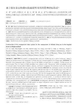 关键词 超说明书用药;德尔菲法;指标体系;西藏地区;医疗机构