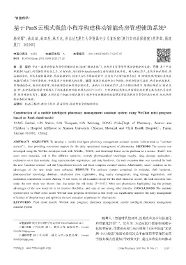 关键词 PaaS云模式;微信小程序;药房管理;移动智能管理辅助系统