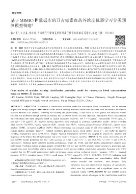 关键词 机器学习;万古霉素;血药浓度;MIMIC-Ⅳ数据库;分类预测