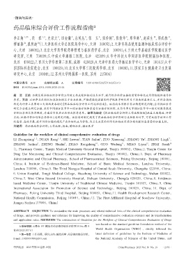 ABSTRACT OBJECTIVE To standardize the main processes and related technical links of the clinical comprehensive evaluation