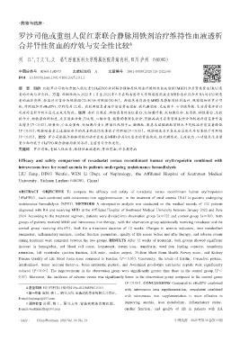 ABSTRACT OBJECTIVE To compare the efficacy and safety of roxadustat versus recombinant human erythropoietin