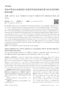 关键词 替加环素;药物性胆汁淤积性肝病;药物性肝损伤;影响因素;预测模型