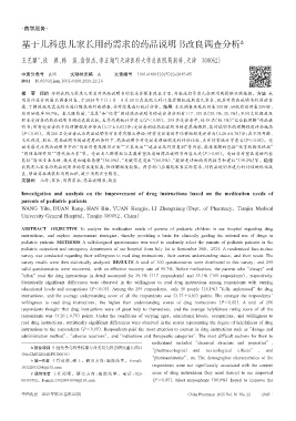 关键词 儿科;家长;用药需求;药品说明书;改良