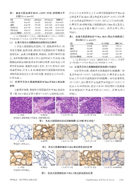 红景天苷-L组 68.72±7.01 b 1.24±0.14 b 178.42±18.08 b 1 611.54±175.27 b 调,Bcl-2 表达显著下调(P<0.05)。结果见图 2、图 3