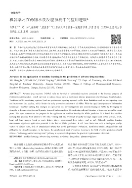 飞速发展,机器学习凭借其强大的特征挖掘能力和动态时序分析能力,为临床ADRs的管理与决策提供了强有力的支持。本文通