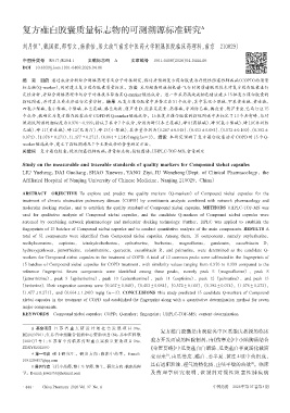 关键词 复方薤白胶囊;慢性阻塞性肺疾病;质量标志物;指纹图谱;UHPLC-TOF-MS;含量测定
