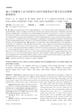 关键词 贝伐珠单抗;药品不良反应;全面触发工具;机器学习;预测模型