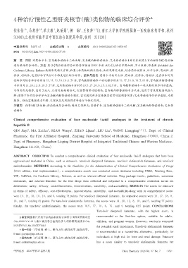 关键词 核苷(酸)类似物;药品临床综合评价;慢性乙型肝炎;恩替卡韦;富马酸替诺福韦二吡呋酯;富马酸丙酚替诺福韦;艾米替