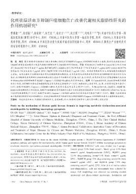 关键词 化痰祛湿活血方;代谢相关脂肪性肝炎;巨噬细胞;焦亡;NOD样受体蛋白3;胱天蛋白酶1;消皮素D